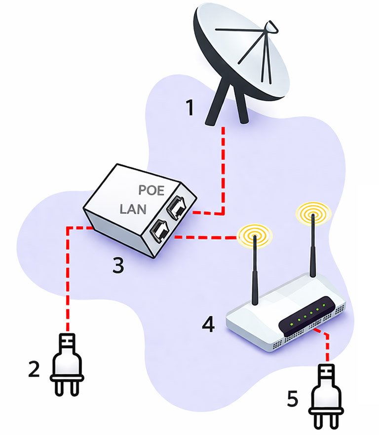 Scollegare l’Access Point WiFi (vedi schema A – elemento 4) e collegare il suo cavo di rete ad un computer (4). Ripetere i test di velocità e diagnostica.